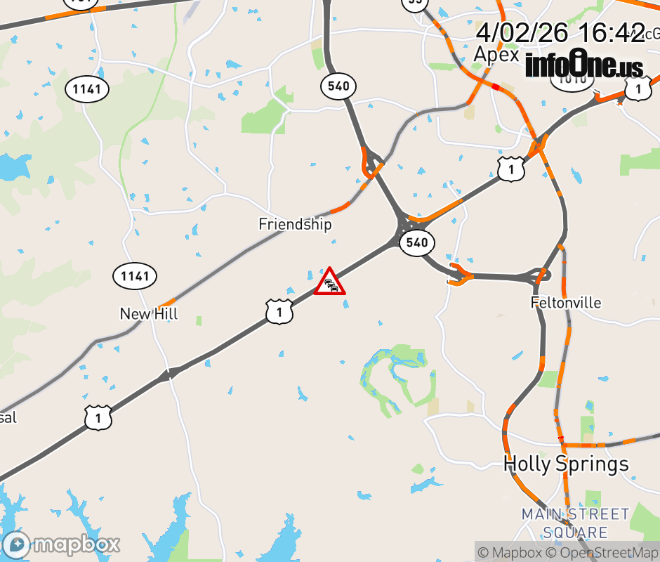 The left lane is closed near Exit 93 (NC 540). ![]() |