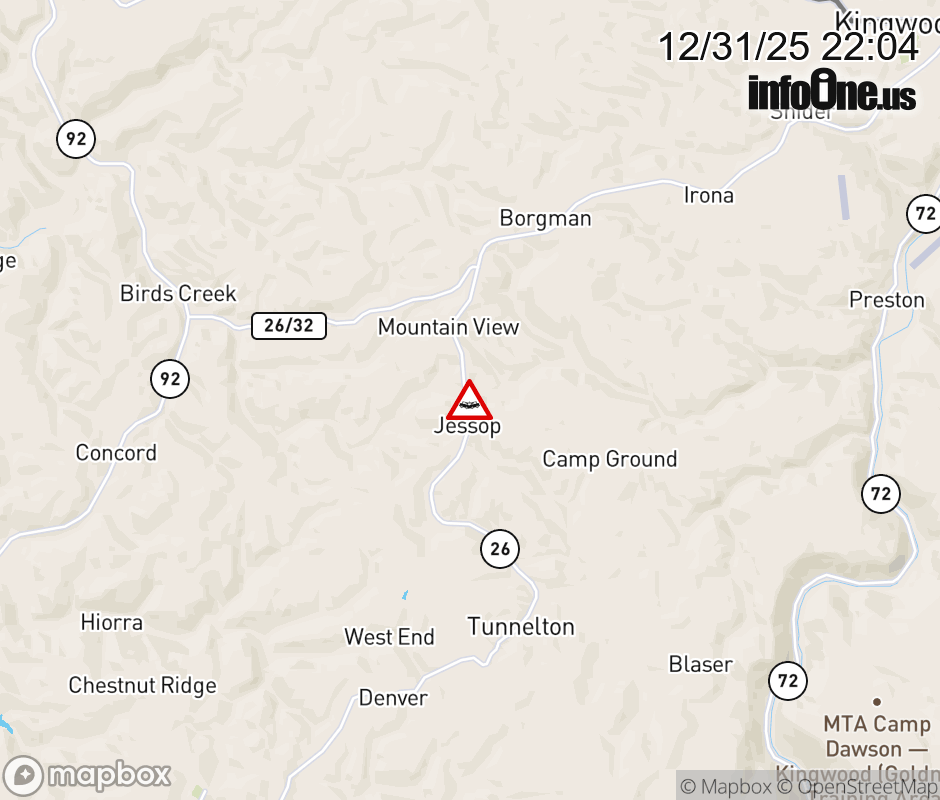 Vehicle Crash on CR-59 (Campground Road) & WV-26 (South Preston Highway). ![]() |
