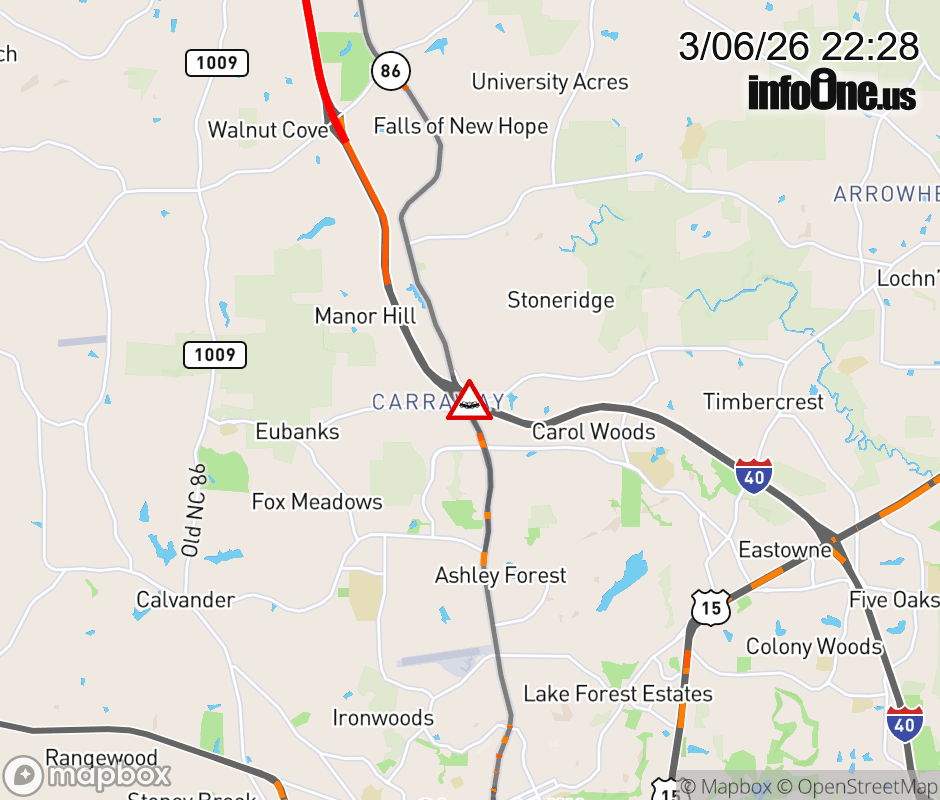 The left lane is closed near Exit 266 (NC 86). ![]() |