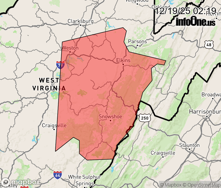 Canceled 12/19/25 3:15 AM Special Weather Statement issued December 19 at 2:18AM EST by NWS Charleston WV At 218 AM EST, Doppler radar was tracking gusty showers along a line extending from Jackson Mill to near Richwood. Movement was east at 45 mph. HAZARD...Wind gusts of 50 to 55 mph. SOURCE...Radar indicated. IMPACT...Gusty winds could knock down tree limbs and blow around unsecured objects. Locations impacted include... Elkins, Buckhannon, Weston, Philippi, Richwood, Marlinton, Audra State Park, Greenbank, Webster Springs, Cass Scenic Railroad, Belington, Addison (Webster Springs), Mill Creek, Camden-On-gauley, Jackson Mill, Snowshoe, Dailey, Holly River State Park, Stonewall Jackson, and Camden On Gauley. This includes the following highways... Interstate 79 between mile markers 86 and 110. Route 33 between mile markers 1 and 35. ![]() |