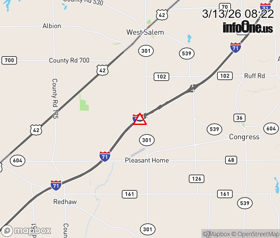 Expect lane closures on I-71 North at SR-301/W Salem, due to a crash.