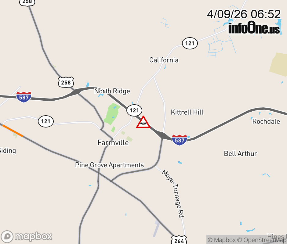 The shoulder is closed past Exit 45 (US 258). Updated: Thu 4/9/26 6:52 AM EDT ![]() Updated: Thu 4/9/26 6:52 AM EDT |