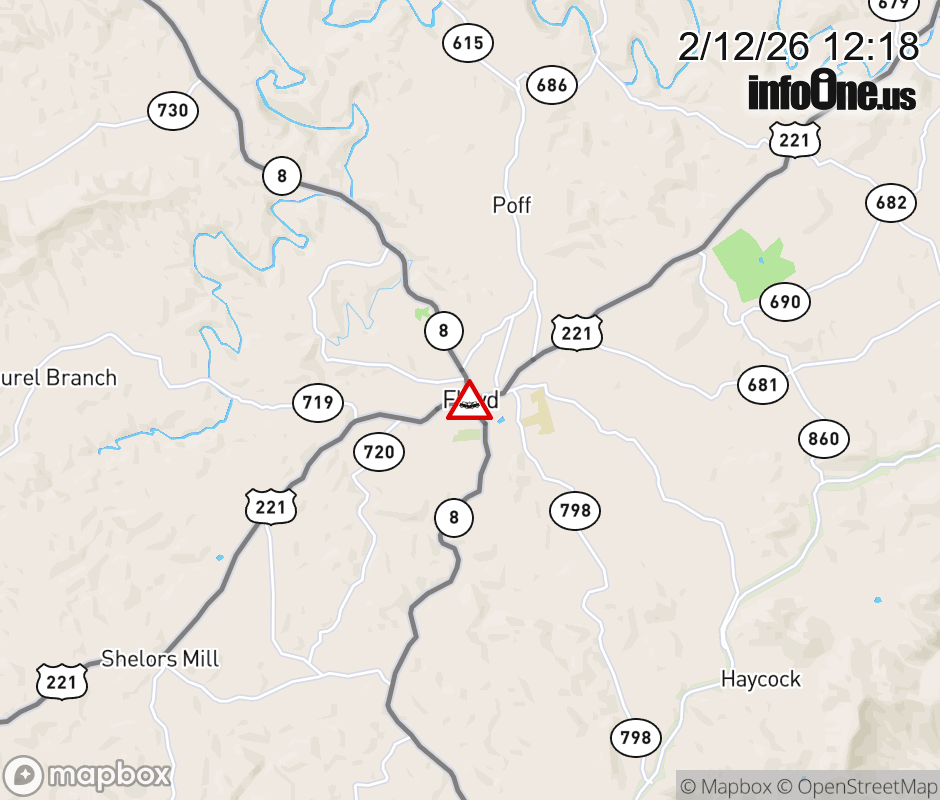 On US-221 North in the County of Floyd, in the vicinity of N Locust St; S Locust St; VA-8N/S, motorists can expect delays due to a vehicle crash. Lane closures exist. Updated: Thu 2/12/26 12:18 PM EST ![]() Updated: Thu 2/12/26 12:18 PM EST |