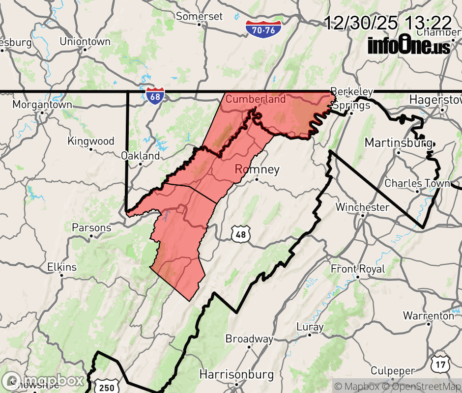 Canceled 12/30/25 3:35 PM Wind Advisory issued December 30 at 1:20PM EST until December 30 at 4:00PM EST by NWS Baltimore MD/Washington DC * WHAT... West winds 20 to 30 mph with gusts up to 50 mph. * WHERE... In Maryland, Central and Eastern Allegany, Eastern Garrett, Extreme Western Allegany, and Western Garrett Counties. In West Virginia, Eastern Grant, Eastern Mineral, Western Grant, and Western Mineral Counties. * WHEN... Until 4 PM EST this afternoon. * IMPACTS... Gusty winds will blow around unsecured objects. Tree limbs could be blown down and a few power outages may result. ![]() |