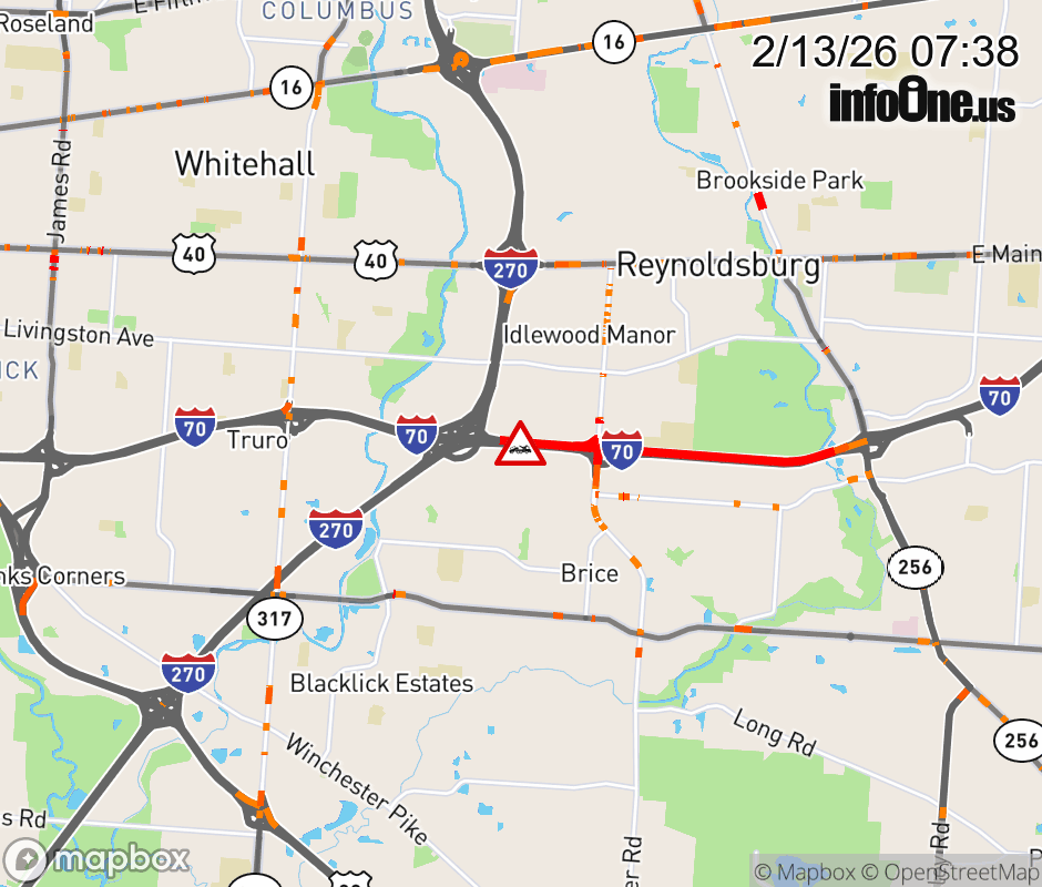 The right lane is blocked on Ramp I-70 West to I-270 North, due to a disabled vehicle. Updated: Fri 2/13/26 7:38 AM EST ![]() Updated: Fri 2/13/26 7:38 AM EST |