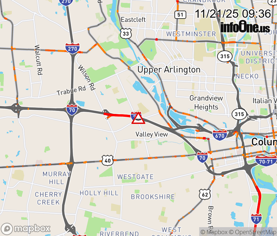 The left lane is blocked on I-70 East beyond Wilson Rd, due to a crash. Updated: Fri 11/21/25 9:36 AM EST ![]() Updated: Fri 11/21/25 9:36 AM EST |