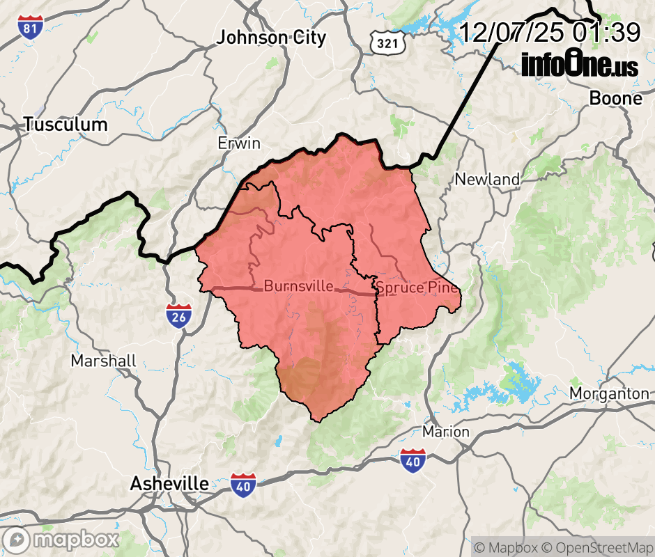 Canceled 12/7/25 9:25 AM Winter Weather Advisory issued December 7 at 1:37AM EST until December 9 at 1:00AM EST by NWS Greenville-Spartanburg SC * WHAT... Snow expected above 3500 feet. Total snow accumulations up to 3 inches. * WHERE... Mitchell and Yancey Counties. * WHEN... From 1 AM Monday to 1 AM EST Tuesday. * IMPACTS... The snowfall will create slippery and snow covered roadways. The hazardous conditions could impact the Monday morning and evening commutes. * ADDITIONAL DETAILS... Up to an inch of snow is possible in the valley locations of Mitchell and Yancey counties, mainly Monday morning. ![]() |