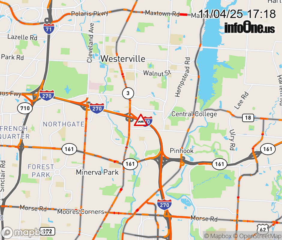 The center lane is blocked on I-270 North at SR-3/Westerville Pike, due to a disabled vehicle. Updated: Tue 11/4/25 5:18 PM EST ![]() Updated: Tue 11/4/25 5:18 PM EST |