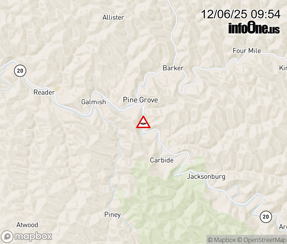 Vehicle Crash on WV-20 at Mile Marker 15.5. Updated: Sat 12/6/25 9:54 AM EST ![]() Updated: Sat 12/6/25 9:54 AM EST |