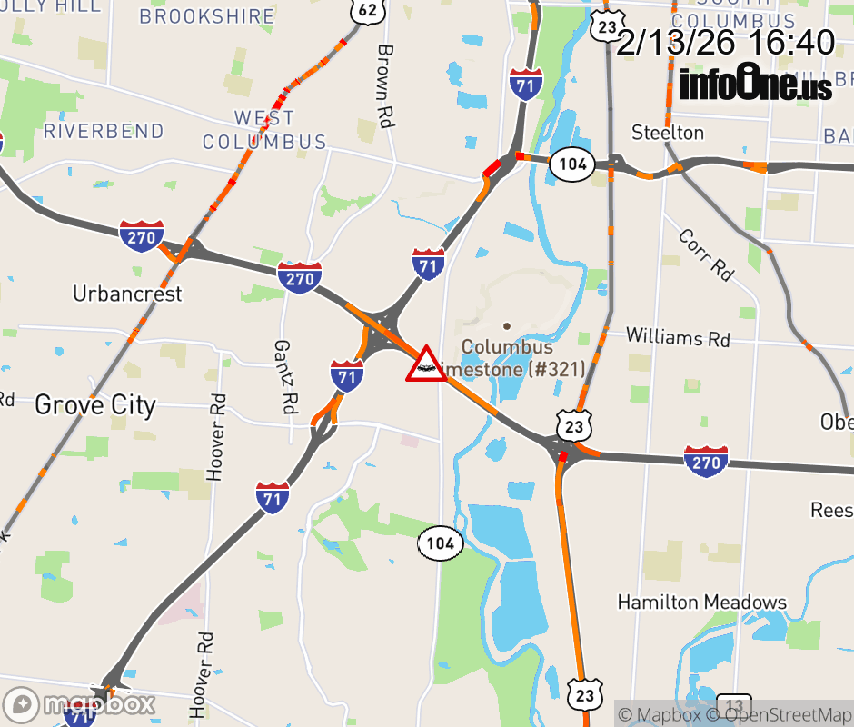 The right lane is blocked on I-270 West Collector at I-270 East, due to a crash. Updated: Fri 2/13/26 4:40 PM EST ![]() Updated: Fri 2/13/26 4:40 PM EST |