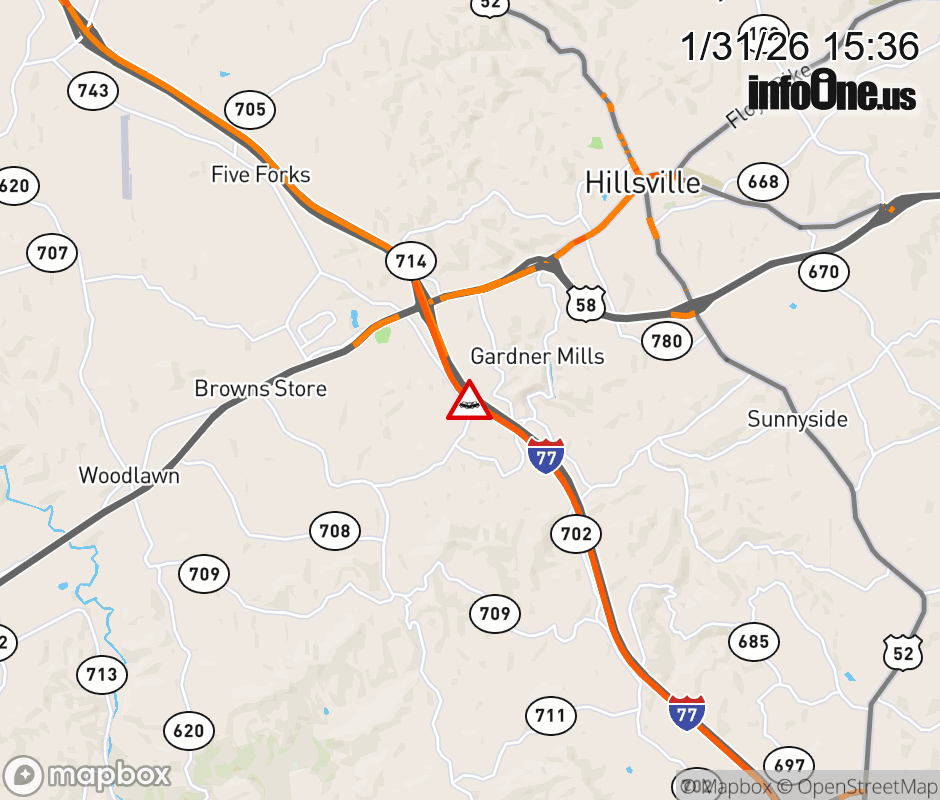 On I-77 at mile marker 14 in the County of Carroll, motorists can expect delays due to a tractor trailer crash. The south exit ramp is closed. ![]() |