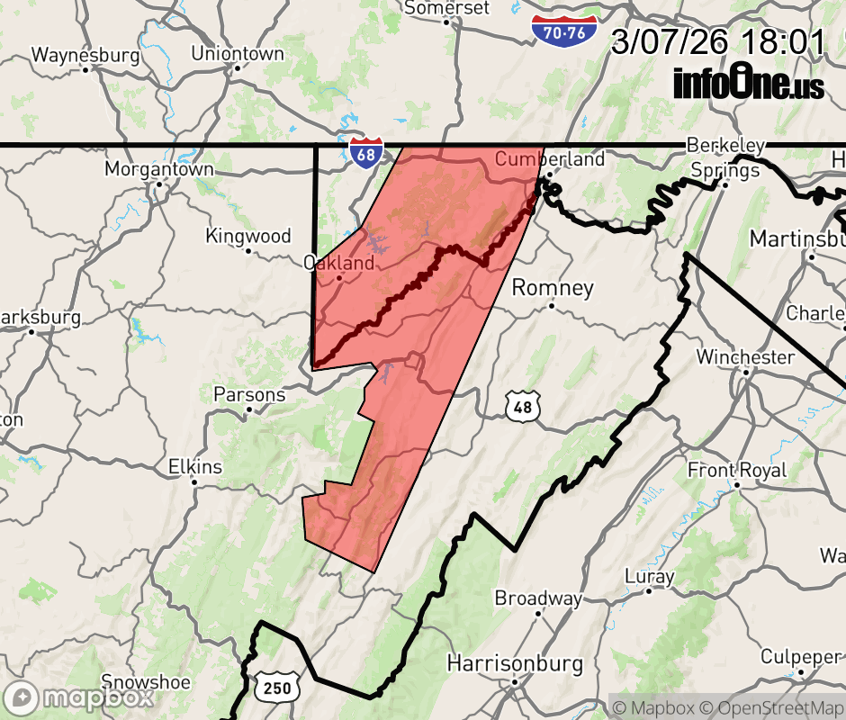 Canceled 3/7/26 6:45 PM Special Weather Statement issued March 7 at 6:00PM EST by NWS Baltimore MD/Washington DC At 600 PM EST, Doppler radar was tracking strong thunderstorms along a line extending from near Meyersdale to 6 miles south of Bittinger to near Belington. Movement was east at 40 mph. HAZARD...Wind gusts up to 40 mph. SOURCE...Radar indicated. IMPACT...Gusty winds could knock down tree limbs and blow around unsecured objects. Locations impacted include... Cumberland, Frostburg, Keyser, Petersburg, Mountain Lake Park, Oakland, Westernport, Bel Air, Bayard, Bittinger, La Vale, Lonaconing, Piedmont, Grantsville, Loch Lynn Heights, Deer Park, Elk Garden, Kitzmiller, Upper Tract, and Cresaptown. This includes Interstate 68 in Maryland between mile markers 15 and 41. ![]() |