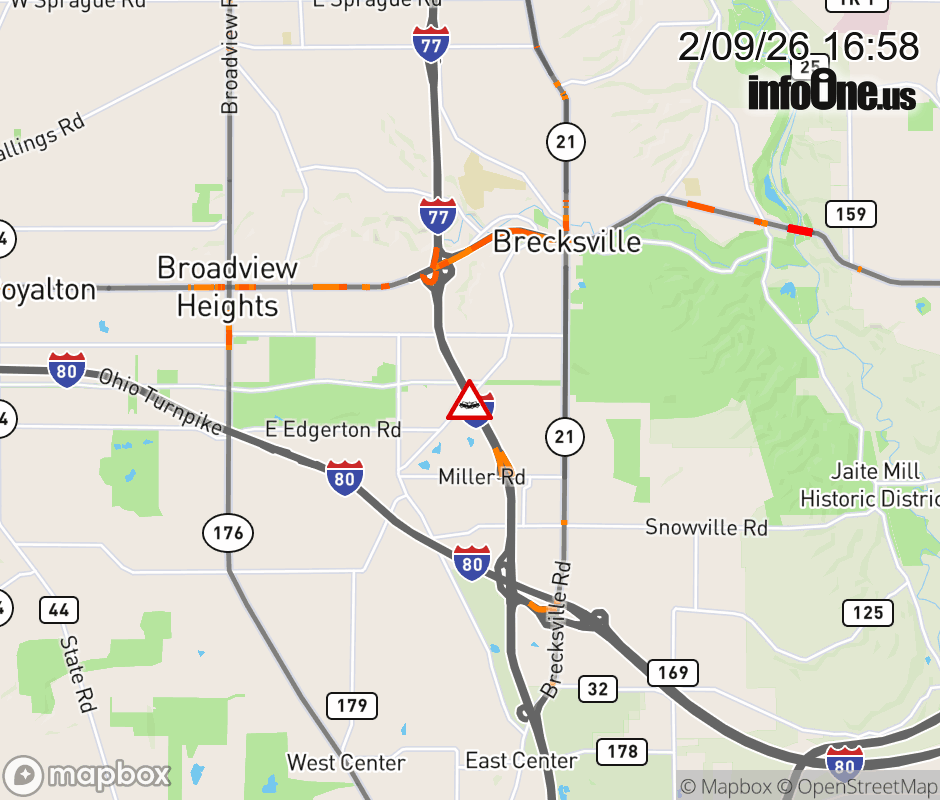 The right shoulder is blocked on I-77 South beyond SR-82 East, due to a crash. Updated: Mon 2/9/26 4:58 PM EST ![]() Updated: Mon 2/9/26 4:58 PM EST |