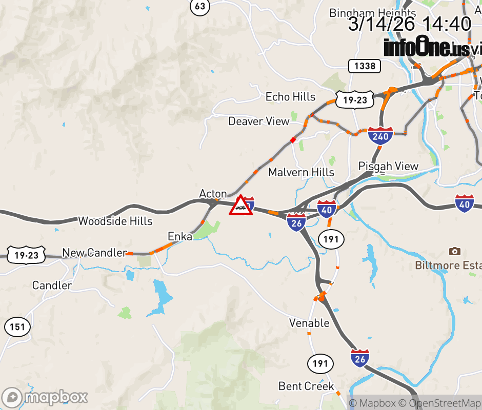 The right lane is closed near Exit 44 (US-74). ![]() |