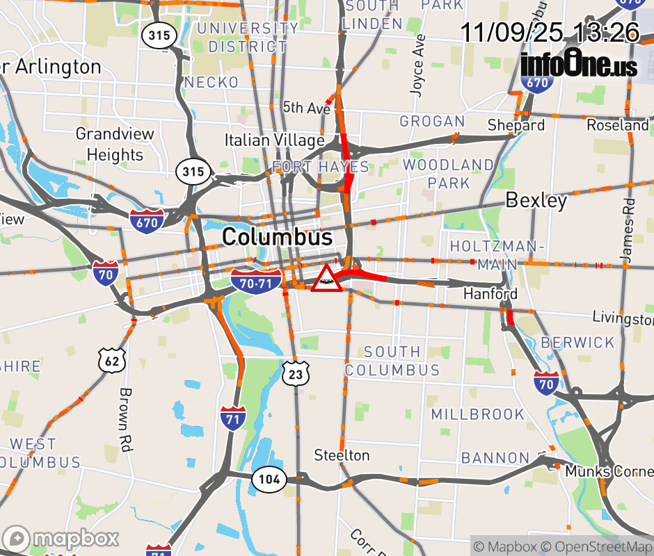The 2 right lanes are blocked on I-70 West/I-71 South at I-70 West, due to a crash. ![]() |