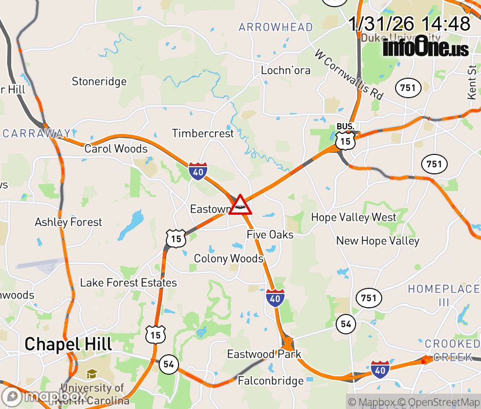 The left shoulder is closed at Exit 270 (US 501). Updated: Sat 1/31/26 2:26 PM EST ![]() |
