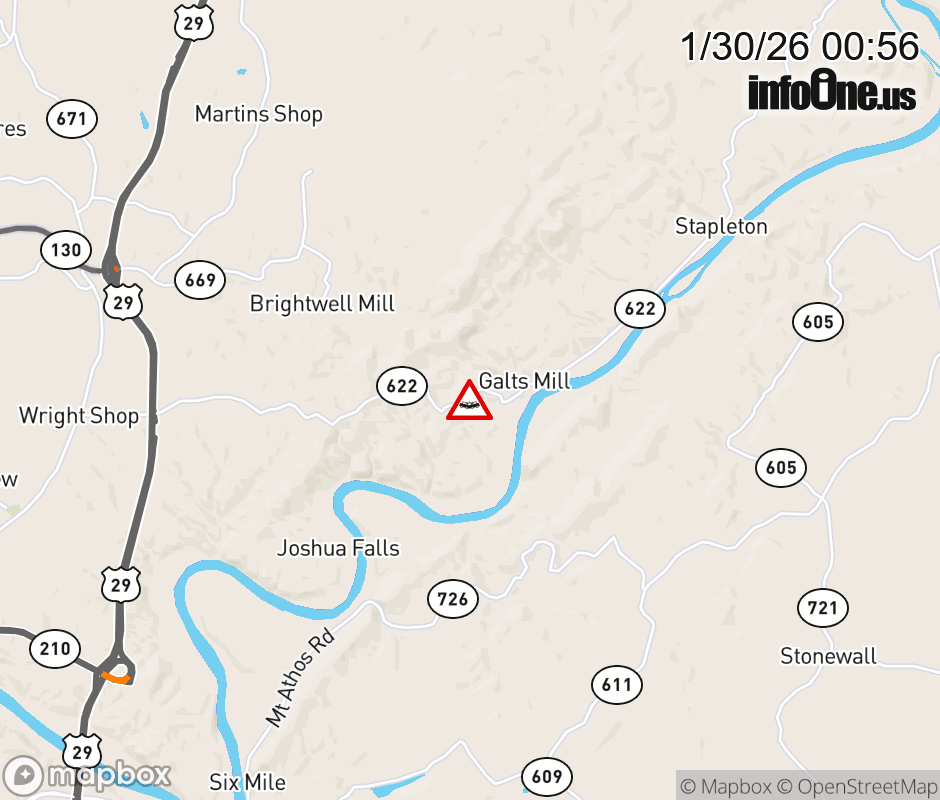 On Rt. 622 East in the County of Amherst, in the vicinity of Beck Creek Rd; Kanawa Ln; Rt. 648N/S (Amherst County), motorists can expect delays due to a tractor trailer crash. Lane closures exist. Updated: Fri 1/30/26 12:56 AM EST ![]() Updated: Fri 1/30/26 12:56 AM EST |