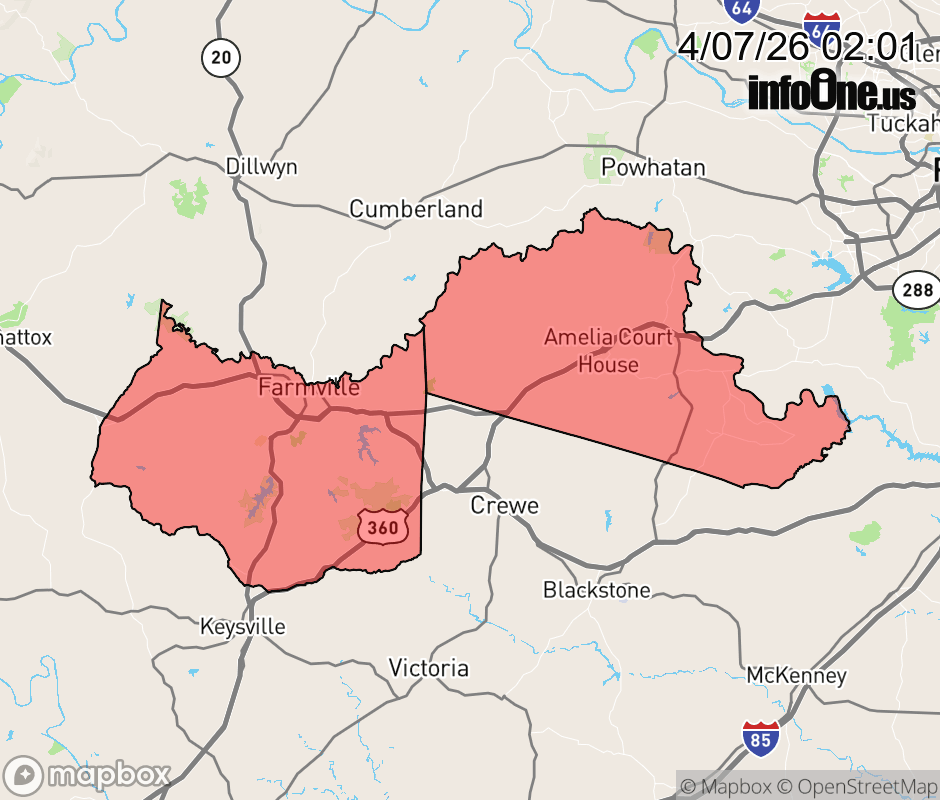 Canceled 4/7/26 2:19 PM Freeze Warning issued April 7 at 2:00AM EDT until April 8 at 9:00AM EDT by NWS Wakefield VA * WHAT... Temperatures as low as 30 to 32 expected. * WHERE... Amelia and Prince Edward Counties. * WHEN... From 2 AM to 9 AM EDT Wednesday. * IMPACTS... Frost and freeze conditions could kill crops, other sensitive vegetation and possibly damage unprotected outdoor plumbing. ![]() |
