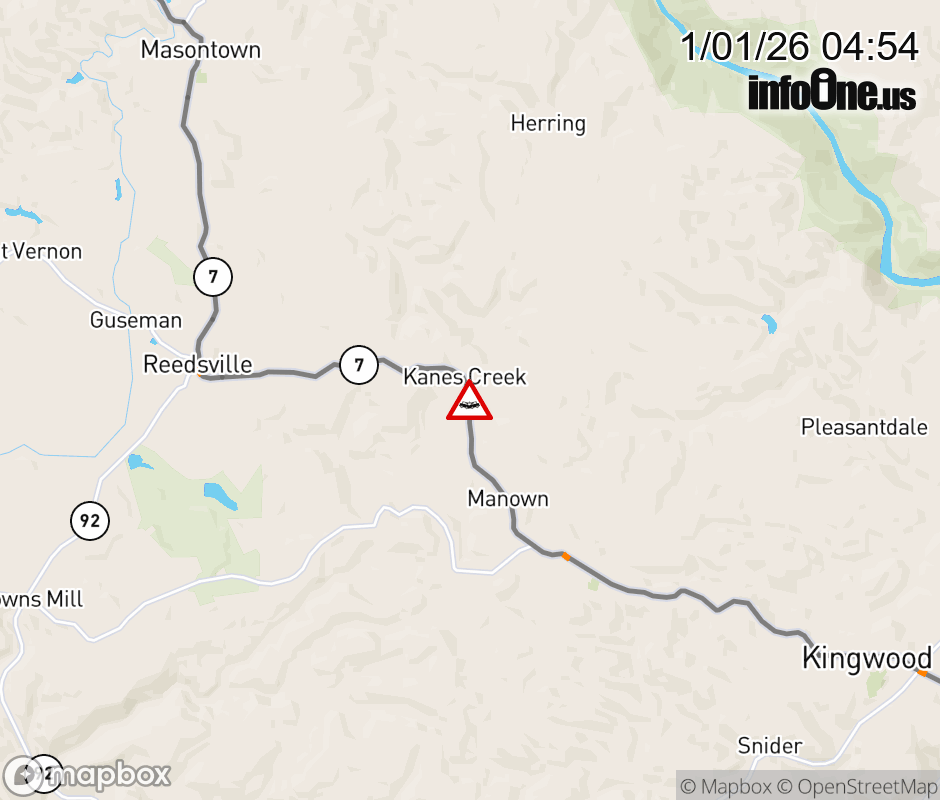 Vehicle Crash on WV-7 (15630 Veterans Memorial Hwy, Kingwood). ![]() |