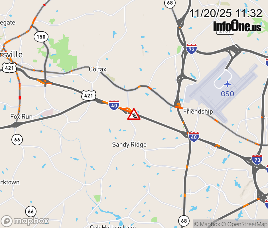 Slow moving closure for emergency pothole repairs on I-40 East between Exit 208 "Sandy Ridge Road" & Exit 212A "I-73 South". ![]() |