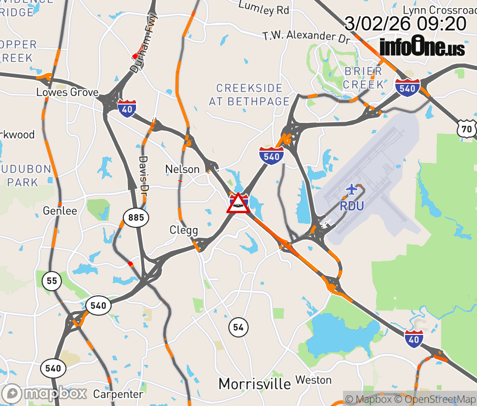 The left lane is closed at Exit 283 (I-540). Updated: Mon 3/2/26 9:20 AM EST ![]() Updated: Mon 3/2/26 9:20 AM EST |