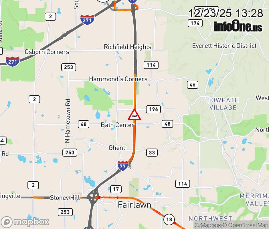 The left lane is blocked on I-77 South beyond Summit County Rest Area 4-32, due to a crash. ![]() |