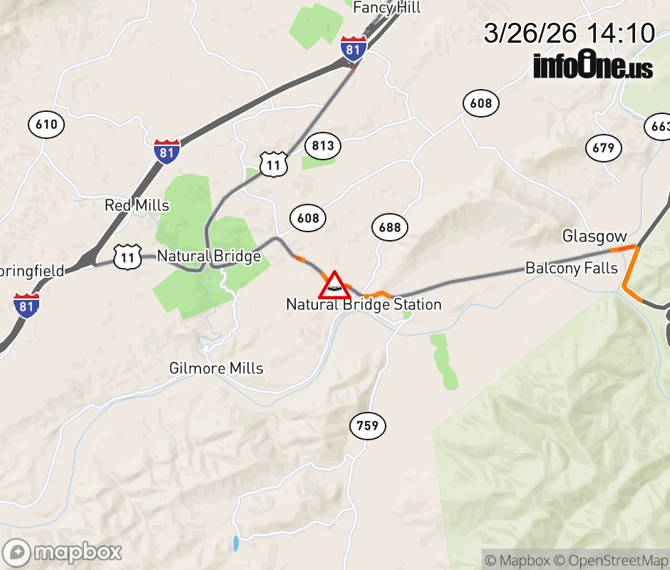 On VA-130 East in the County of Rockbridge, in the vicinity of Ranger Ln, motorists can expect delays due to a vehicle crash. Updated: Thu 3/26/26 2:10 PM EDT ![]() Updated: Thu 3/26/26 2:10 PM EDT |