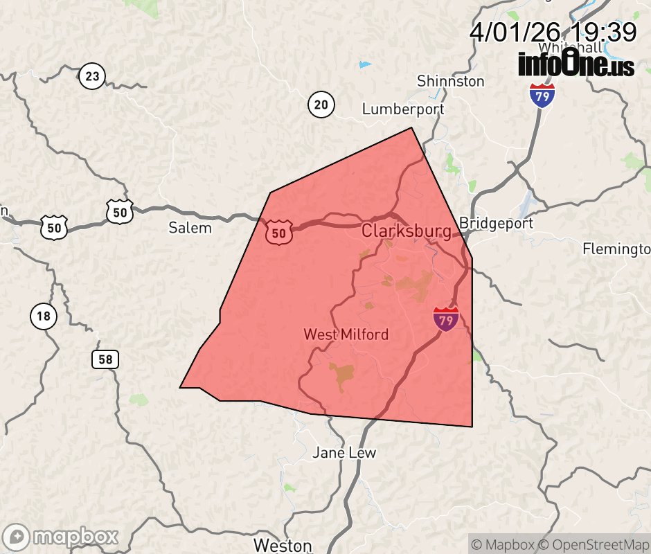 Canceled 4/1/26 7:56 PM Severe Thunderstorm Warning issued April 1 at 7:37PM EDT until April 1 at 8:00PM EDT by NWS Charleston WV At 737 PM EDT, a severe thunderstorm was located near Nutter Fort, or near Clarksburg, moving east at 35 mph. HAZARD...60 mph wind gusts and penny size hail. SOURCE...Radar indicated. IMPACT...Expect damage to roofs, siding, and trees. Locations impacted include... Clarksburg, Stonewood, Nutter Fort, Anmoore, West Milford, Lost Creek, Wolf Summit, and Despard. ![]() |
