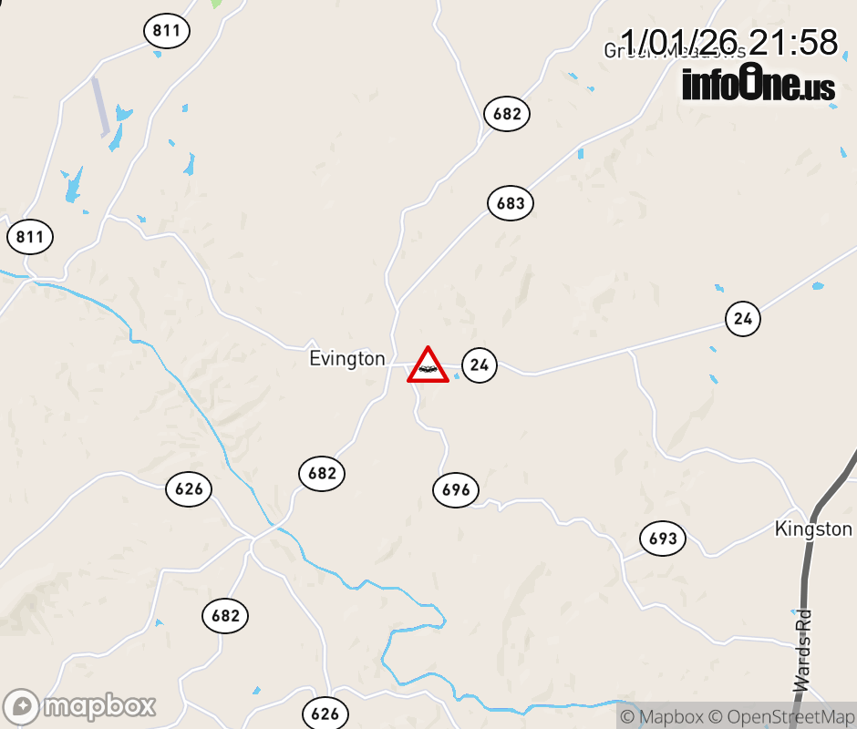 On VA-24 in the County of Campbell, in the vicinity of Dearborn Rd; Rt. 696N/S (Campbell County), motorists can expect delays due to a vehicle crash. All east lanes are closed. All west lanes are closed. ![]() |
