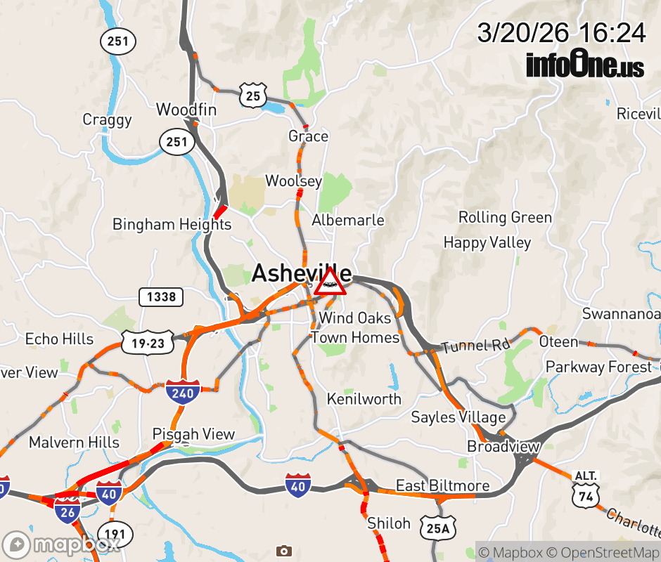 The right lane is closed near Woodfin Place. ![]() |