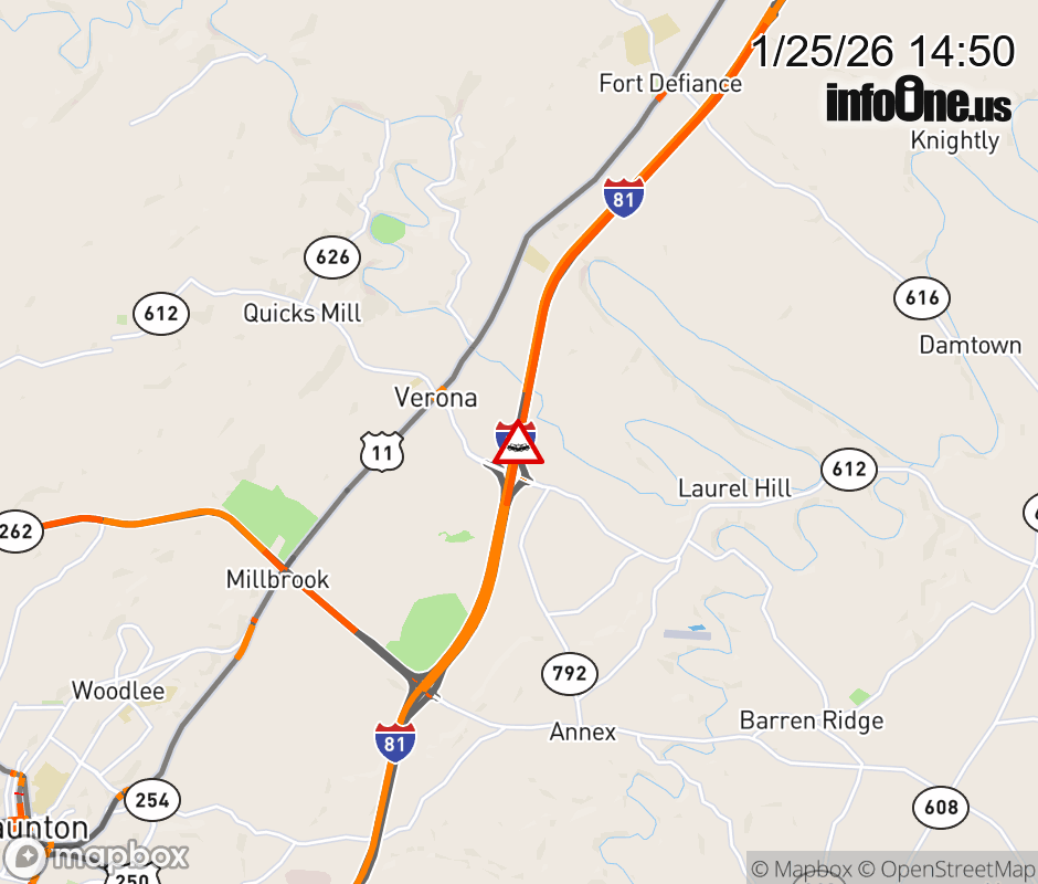On I-81 North at mile marker 227.8 in the County of Augusta, motorists can expect delays due to a tractor trailer crash. Updated: Sun 1/25/26 2:50 PM EST ![]() Updated: Sun 1/25/26 2:50 PM EST |