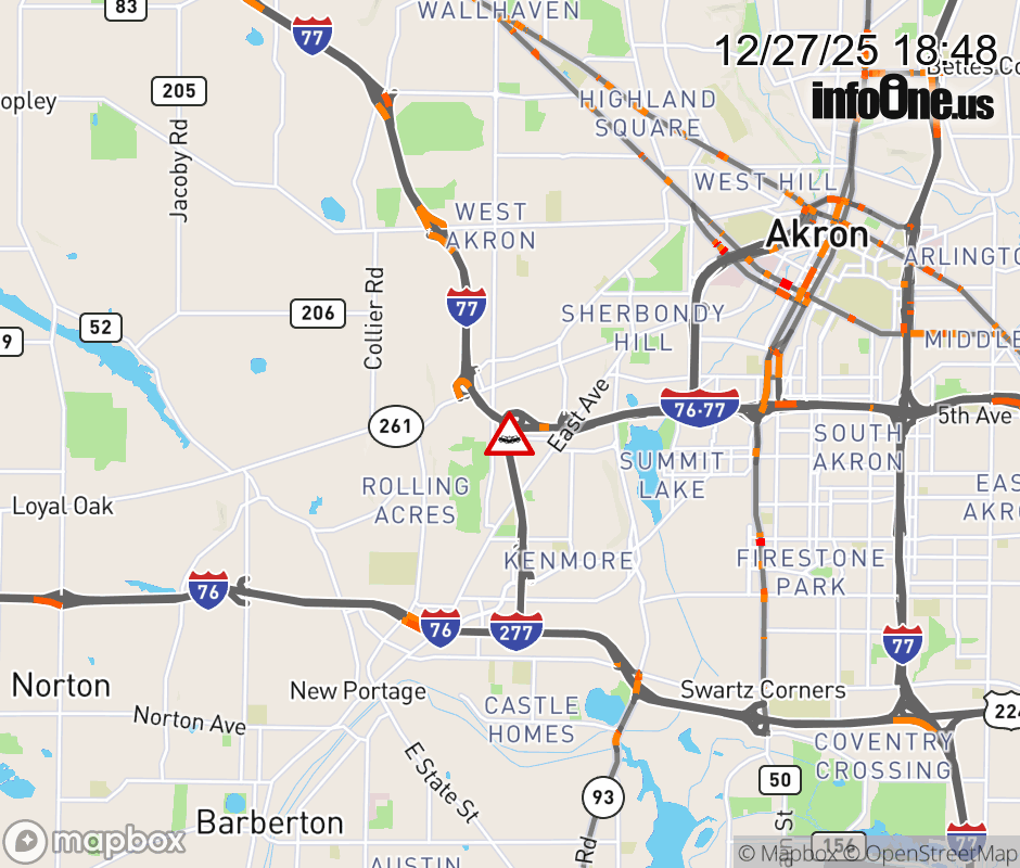 The left lane is blocked on I-76 East at I-77 North, due to a crash. ![]() |