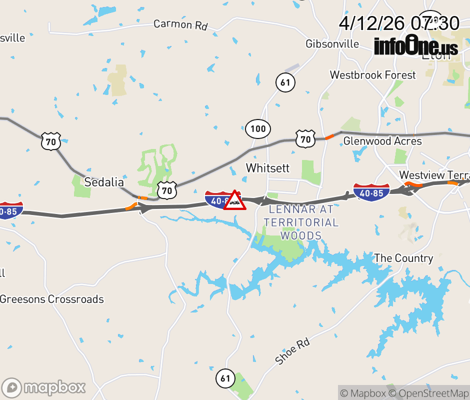 The right lane is closed past Exit 138 (NC-61). ![]() |