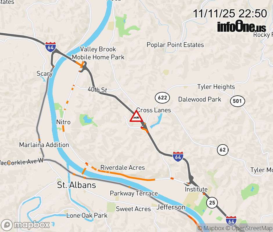 Disabled Vehicle on I-64E at Mile Marker 47.0. Updated: Tue 11/11/25 10:50 PM EST ![]() Updated: Tue 11/11/25 10:50 PM EST |