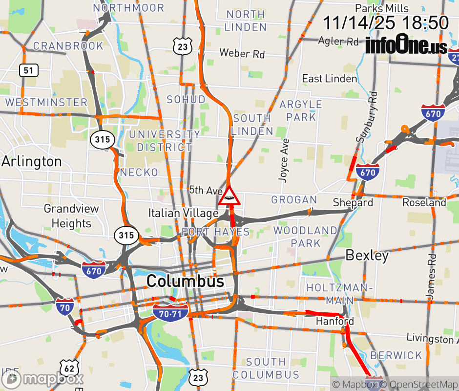 The left lane is blocked on I-71 North beyond I-670 West, due to a crash. ![]() |