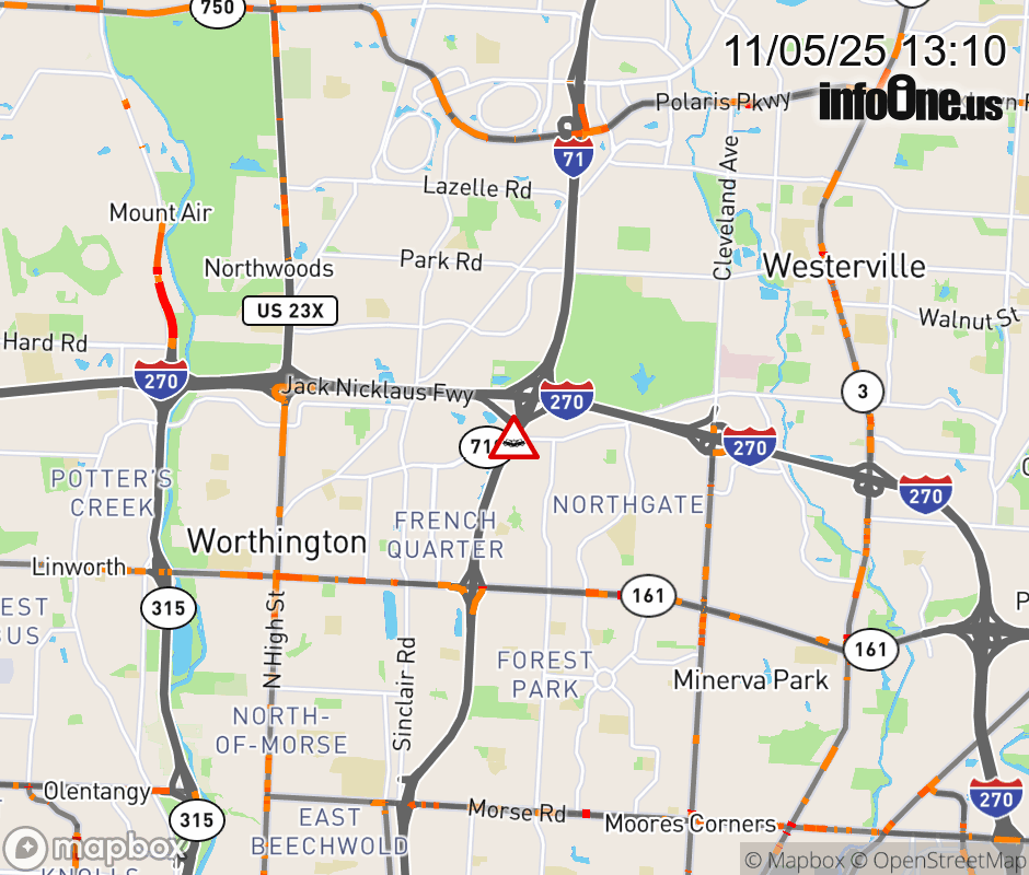The left lane is blocked on I-71 North at I-270 (North Side), due to a crash. Updated: Wed 11/5/25 1:10 PM EST ![]() Updated: Wed 11/5/25 1:10 PM EST |