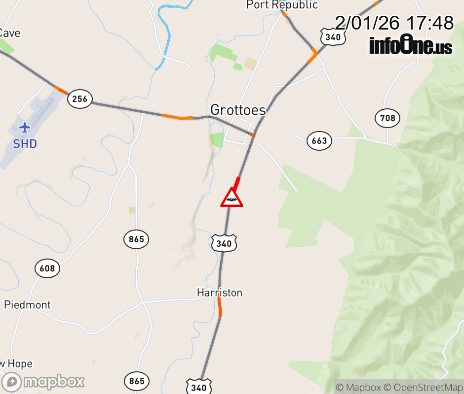 On US-340 North in the County of Augusta, in the vicinity of Stull Run Ln; Rt. 856E/W (Augusta County), motorists can expect delays due to a vehicle crash. Updated: Sun 2/1/26 5:48 PM EST ![]() Updated: Sun 2/1/26 5:48 PM EST |