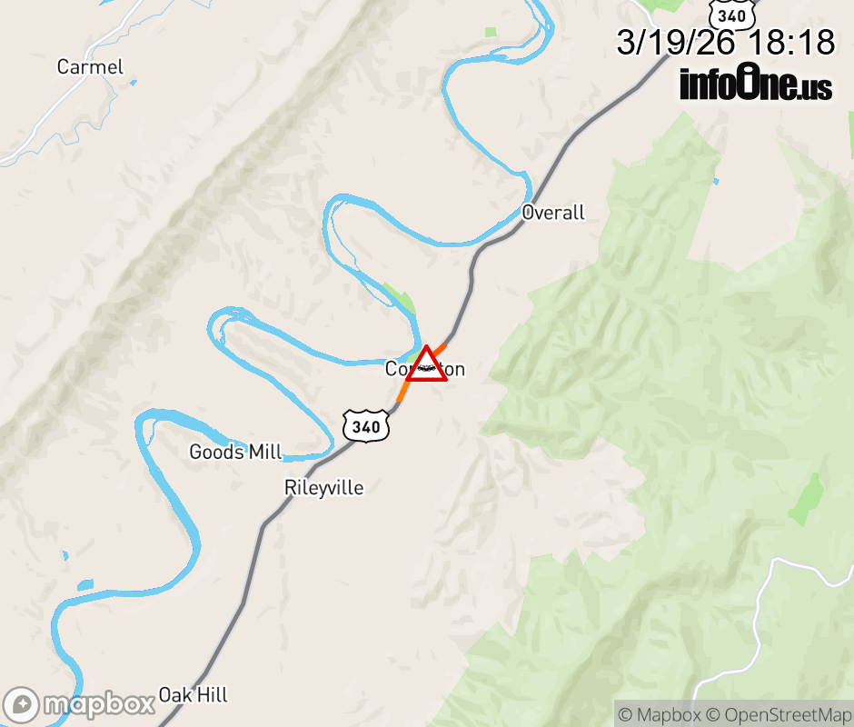On US-340 in the County of Page, in the vicinity of Compton Hollow Rd; Rt. 662N/S (Page County), motorists can expect delays due to a vehicle crash. All north lanes are closed. ![]() |