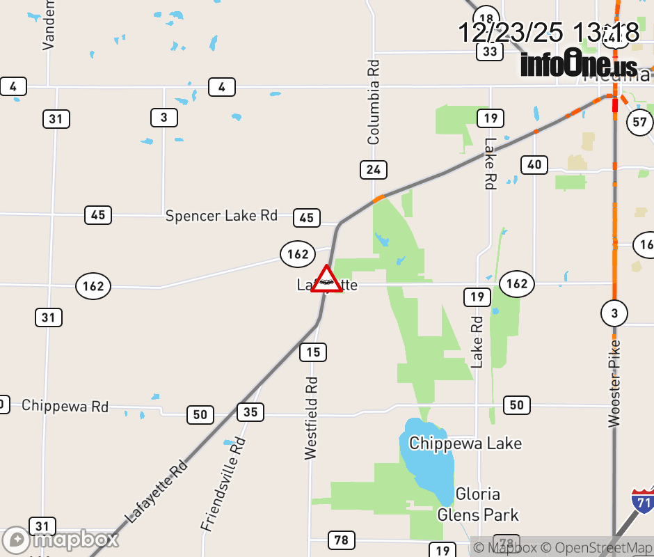Expect lane closures on US-42 in both directions at Wedgewood Rd. (MM: 12.1), due to crash. Expect lane closures on US-42 in both directions at Wedgewood Rd. (MM: 12.1), due to crash. ![]() |