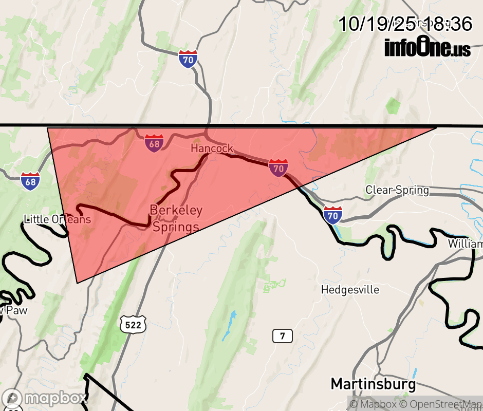 Canceled 10/19/25 6:47 PM Severe Thunderstorm Warning issued October 19 at 6:35PM EDT until October 19 at 7:15PM EDT by NWS Baltimore MD/Washington DC SVRLWX The National Weather Service in Sterling Virginia has issued a * Severe Thunderstorm Warning for... Northwestern Washington County in north central Maryland... Northeastern Allegany County in western Maryland... Northern Morgan County in the Panhandle of West Virginia... * Until 715 PM EDT. * At 635 PM EDT, severe thunderstorms were located along a line extending from Inglesmith to 6 miles southwest of Berkeley Springs, moving east at 35 mph. HAZARD...60 mph wind gusts. SOURCE...Radar indicated. IMPACT...Damaging winds will cause some trees and large branches to fall. This could injure those outdoors, as well as damage homes and vehicles. Roadways may become blocked by downed trees. Localized power outages are possible. Unsecured light objects may become projectiles. * Locations impacted include... Hancock, Berkeley Springs, Great Cacapon, Pecktonville, Forest Park, Lineburg, Bellegrove, Berryville, Spohrs Crossroads, Sleepy Creek, and Shady Grove. ![]() |