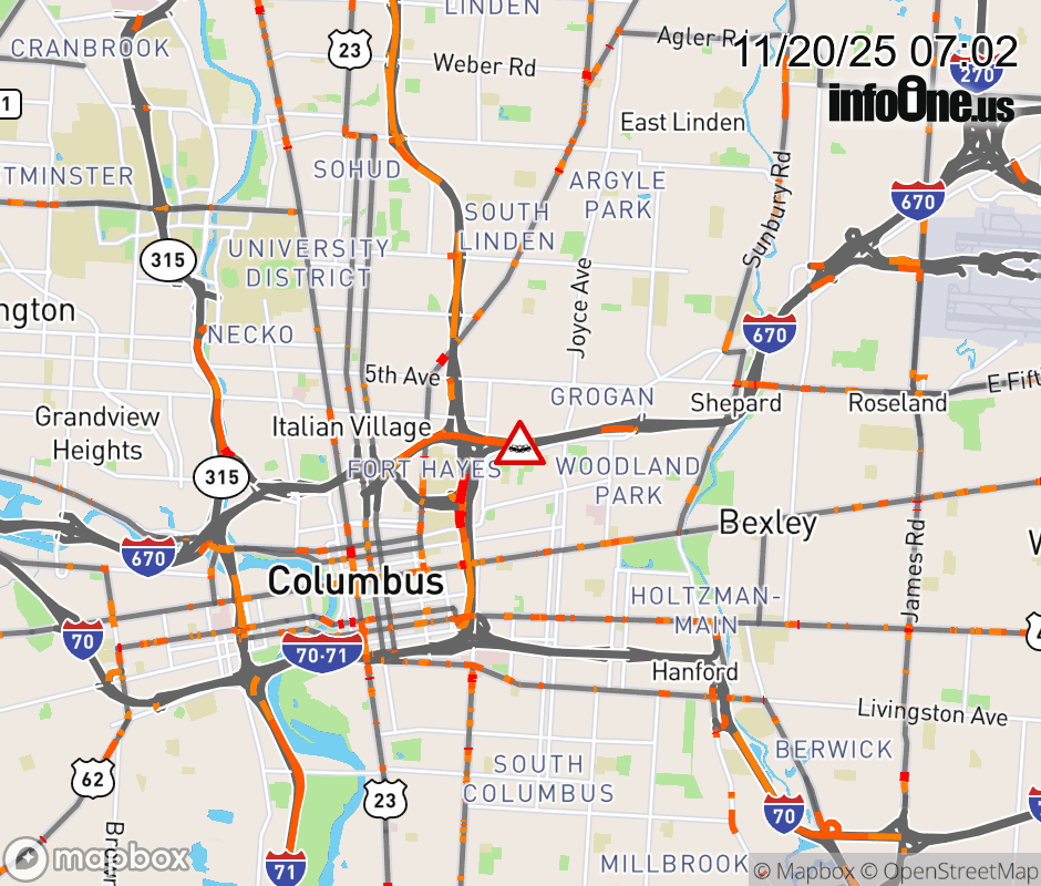 The left shoulder is blocked on I-670 West at I-71 North/South, due to a crash. Updated: Thu 11/20/25 7:02 AM EST ![]() |