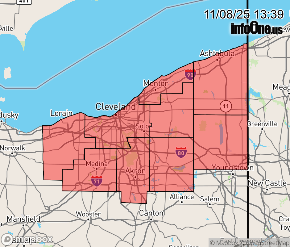 Canceled 11/8/25 10:17 PM Winter Storm Watch issued November 8 at 1:34PM EST until November 11 at 10:00AM EST by NWS Cleveland OH * WHAT... Heavy lake effect snow possible. Total snow accumulations between 5 and 10 inches possible. * WHERE... Portions of north central and northeast Ohio. * WHEN... From Sunday evening through Tuesday morning. * IMPACTS... Visibilities may drop below 1/4 mile due to falling and blowing snow. Snowfall rates may exceed 1 to 2 inches per hour within well organized lake effect snow bands. The gusty winds and weight of snow on tree limbs may down power lines and could cause sporadic power outages. Travel could be difficult. The hazardous conditions could impact both the Monday morning and evening commutes as well as the Tuesday morning commute. * ADDITIONAL DETAILS... There may be an elevated risk for scattered power outages due to trees in the local area still have most of their leaves. The combination of leaves on trees and heavy wet snow may bring down large branches on to power lines during this potential early lake effect snow event. ![]() |