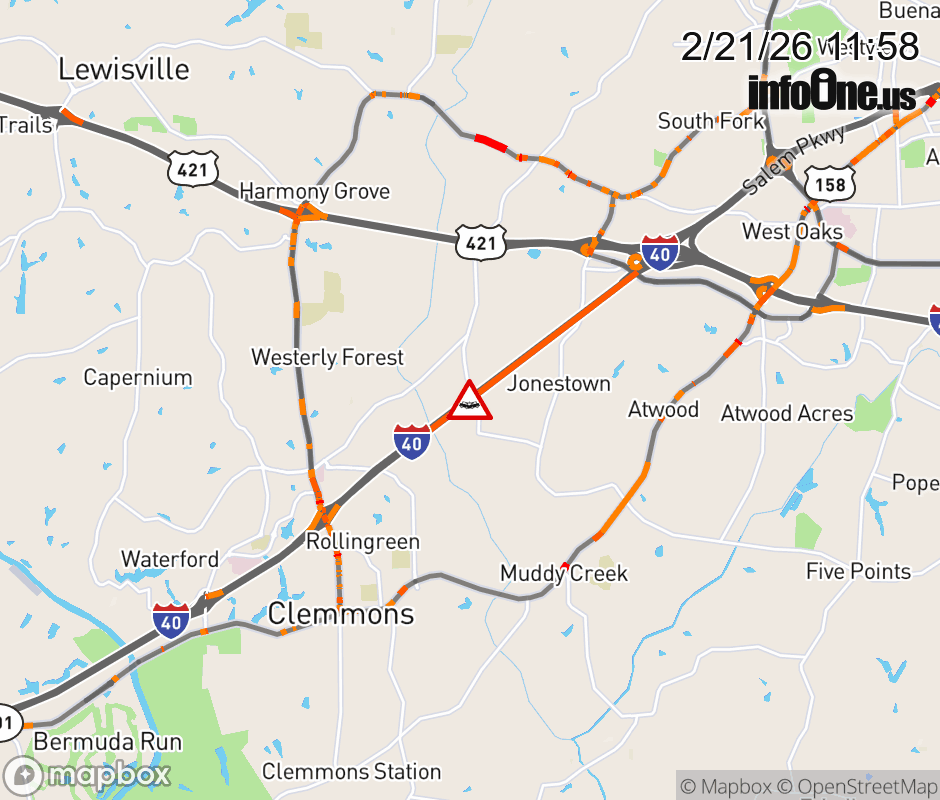 The left lane is closed two miles past Exit 184 (Lewisville Clemmons Rd). ![]() |