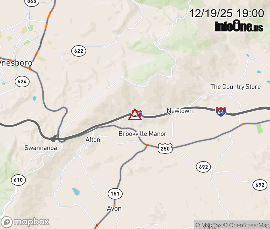 On I-64 West at mile marker 102.4 in the County of Albemarle, motorists can expect delays due to a vehicle crash. Updated: Fri 12/19/25 7:00 PM EST ![]() Updated: Fri 12/19/25 7:00 PM EST |