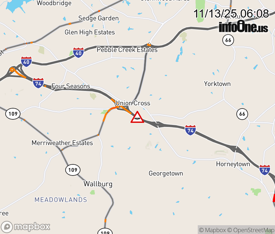 Canceled 11/13/25 6:14 AM Location: I-74W at MM 60, NC Vehicle Crash.