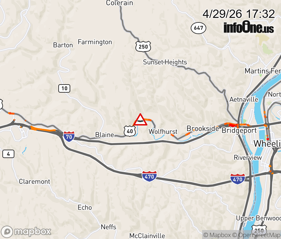 US-40 CLOSED in BOTH DIRECTIONS 0.2 miles beyond Chermont Rd (MM: 25), due to crash. Use alternate route. US-40 CLOSED in BOTH DIRECTIONS 0.2 miles beyond Chermont Rd (MM: 25), due to crash. Use alternate route. ![]() |