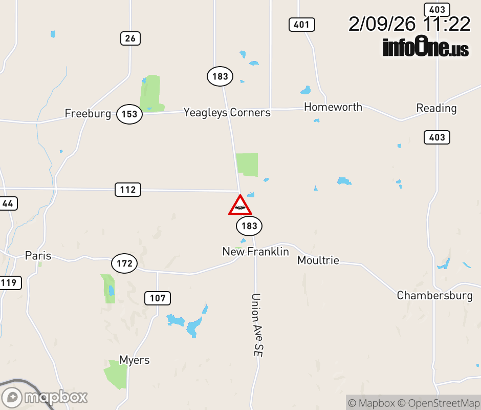 Canceled 2/9/26 12:18 PM Location: SR-183 North at MM 22.7, OH Accident.