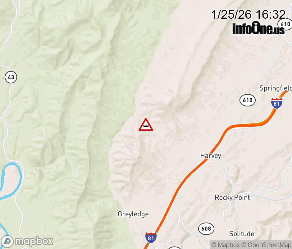 On Rt. 622 North in the County of Botetourt, in the vicinity of Greyledge Rd; Rt. 611N/S (Botetourt County), motorists can expect delays due to a vehicle crash. Lane closures exist. Updated: Sun 1/25/26 4:32 PM EST ![]() Updated: Sun 1/25/26 4:32 PM EST |