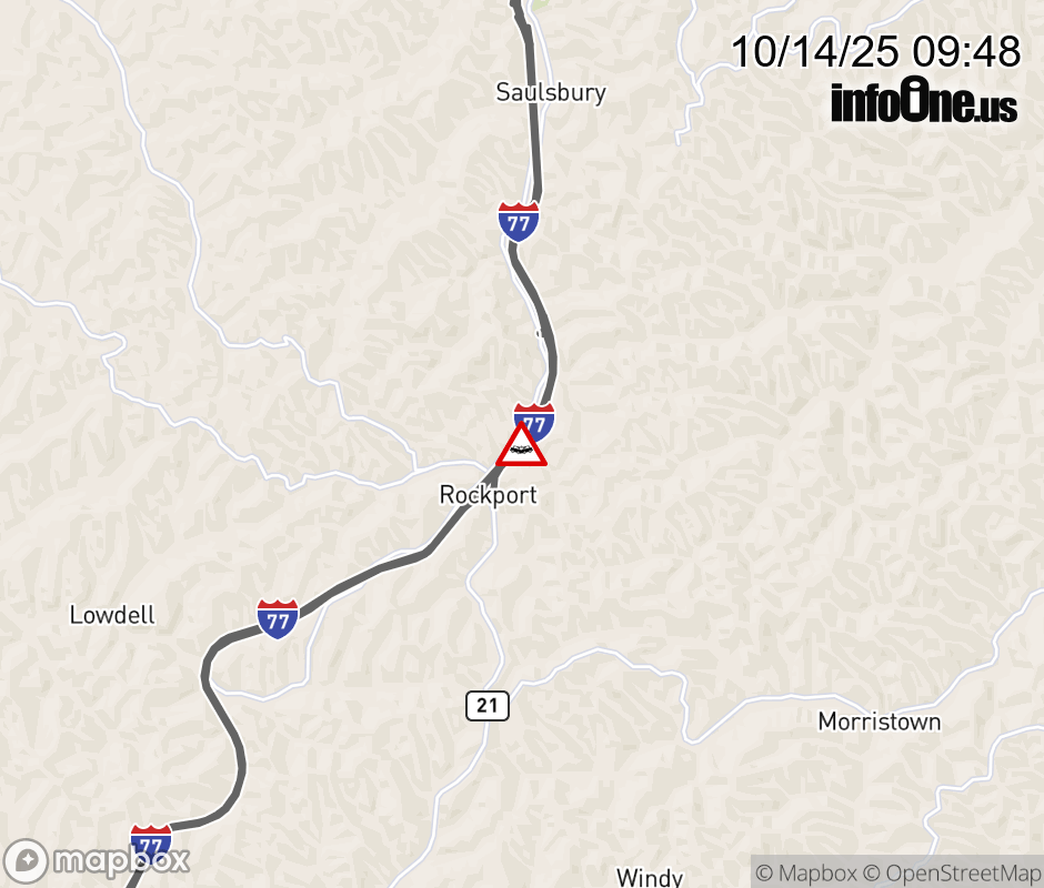 Canceled 10/14/25 11:42 AM Location: I-77 at MM 162.0, WV Accident.