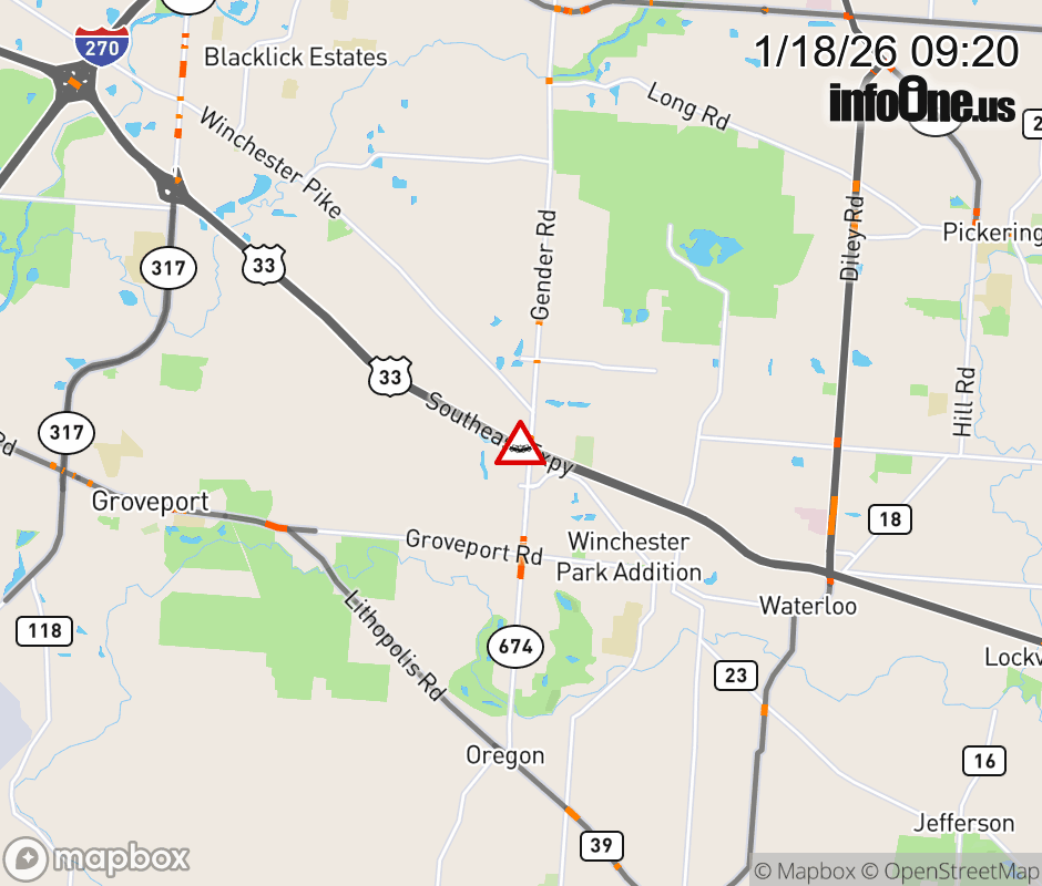 Expect lane closures on Ramp from OH-674 to US-33 W, due to a crash. ![]() |